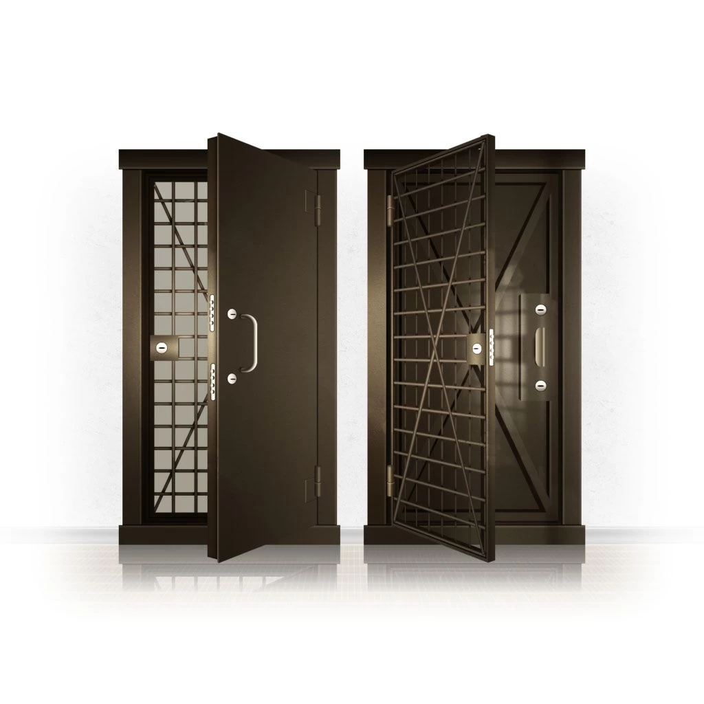 Металлические двери КХО и КХН представляют собой входные блоки, обладающие высоким уровнем взломостойкости и состоят из трех основных элементов: усиленного каркаса, сплошного металлического полотна и решетчатой двери. Дверной блок изготавливается из стального уголка 100*100 мм. Места крепления блока к стене цементируются и закрываются стальными наличниками шириной 40 мм. Крепеж заходит вглубь стены на 80 мм. В конструкции внешней створки монтируются ребра жесткости, для обшивки используется сталь толщиной не менее 3 мм. Внутренняя решетка изготавливается из прутка диаметром 16 мм. Размер ячеек решетки должен составлять не более 15 на 15 см. В точках пересечения прутья надежно приваривают друг к другу. В КХО и КХН необходимо поддерживать определенную температуру и влажность. Для этого внутреннее пространство глухой двери заполняется теплоизоляционным материалом, а по периметру двери приклеивается уплотнитель. Такие двери оборудуются замками с повышенным уровнем взломостойкости. Специализированные двери КХО и КХН в Гудермесе могут быть оснащены сигнализацией, в конструкции могут быть проушины для навесного замка и элементами для опечатывания. Если идет речь о двери в комнату хранения оружия, в створке оборудуется окно для выдачи оружия и спец. средств, которое накрывается стальной дверцей.