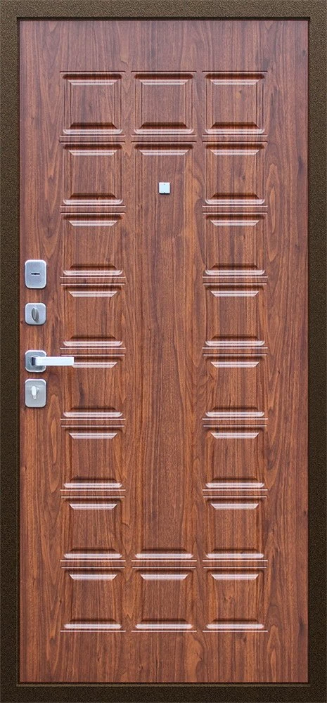 Надежная входная Дверь Спартак Орех темный премиум класса по цене 34 460 руб. Большая толщина стали защитит от проникновения в ваш дом, квартиру или коттедж. Используется очень качественная фурнитура: замки, цилиндры, ручки, защелки. Покрытие и отделка двери изготовлено под внимательным контролем производителя. Дверь имеет долгий срок службы и гарантию.